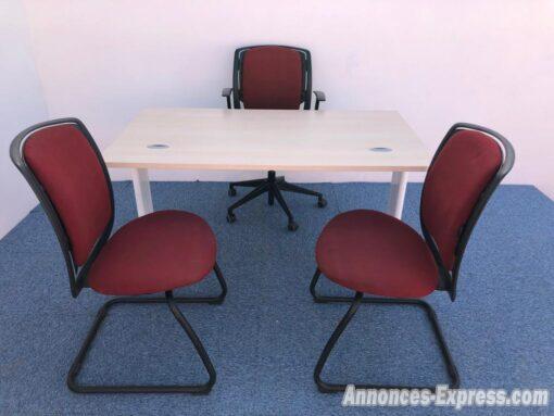 Bureau droit Colombia clen 140x80cm Travaillez confortablement avec le bureau droit Excellens, un modèle esthétique et de bonne qualité. Son plateau droit mélaminé d’une épaisseur de 25 mm et ses chants droits ABS antichocs témoignent de sa grande résistance contre tout choc et toute pression. Soutenu par un piétement métallique de forme T, ce modèle assure un excellent équilibre et une parfaite stabilité. Et surtout il se règle à la morphologie de son utilisateur. Pratique, au niveau du piétement et sur le plateau existe un passe-câbles pour faciliter la circulation des fils électriques des outils informatiques. Plateau proposé en 5 décors : chêne clair. finitions de piétement : blanc Fabrication française. Dimensions : H 73 x L 140 x P 80 cm. Dimensions plateau : L 120 x P 80 cm. Fabrication Française à l’exception de la finition chêne clair de Fabrication Européenne. tarif 1300dh ht le tarif indiqué concerne uniquement le bureau (sans chaise, ni caissons...) Livraison possible dans tout le Maroc devis sur demande Tous nos produit sont d’occasion WEB SITE: mobilierbureaupro youtube : mobilierbureaupro twitter:mobilierbureaupro instagram:mobilierbureaupro facebook : mobilier bureau pro