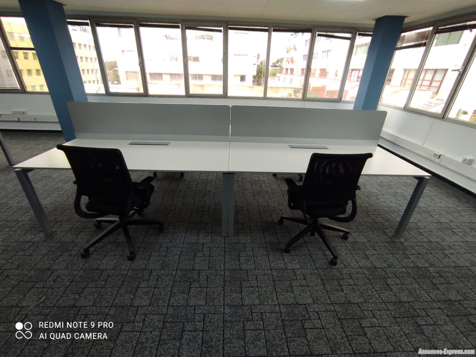 Bureau bench Haworth 180×80 plateau avec séparation cet ensemble se compose de 4 postes BENCH blanc Séparé l’un de l’autre par une cloisonette centrale , cet open space favorise aussi bien l’intimité que le partage. Son plan de travail comprend un top access avec goulotte. De ce fait , il vous permet d’utiliser des équipements multimédias. De par cette fontionnalité , vos connectiques apparaitront de manière discrète et organisée. Bureau bench 4 poste 360×160(180×80 le plateau) au prix de 12000dh HT disponible en 2 poste 180×160(180x80cm le plateau) au prix de 6000dh HT Livraison possible dans tout le Maroc devis sur demande Tous nos produit sont d’occasion WEB SITE: mobilierbureaupro youtube : mobilierbureaupro twitter:mobilierbureaupro instagram:mobilierbureaupro facebook : mobilier bureau pro