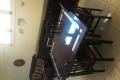 4 chaises + table extensible + buffet 4tiroirs 4portes vitres (3m) laqué bordeaux Origine Italie Très bon état